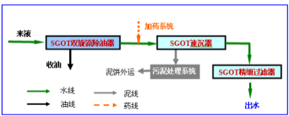 工藝流程為:進(jìn)水—雙旋流除油器—緩沖罐—速沉器—全自動(dòng)精細(xì)過濾器 — 出水。